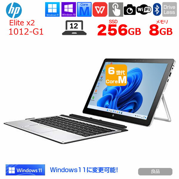 【中古】HP Elite x2 1012 G1 中古 2in1タブレット Office Win10 or Win11 キーボード付[Core M5 6Y54 メモリ8GB SSD256GB 無線 カメラ 12型]:良品