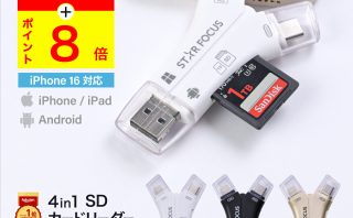 microSDカードつきはこちら 商品説明 5in1SDカードリーダーブラウザで表示する日本語説明書つきUSB2.0&MicroOTG&USBCに対応。OTG機能付快速なデータ伝送が実現できます。PC・スマホ・タブレットの色々なデータをSDカードを通してデータ転送を行います。デジカメやビデオカメラアクションカメラ等で撮った写真や動画をスマホやタブレットで視聴できます。WiFiやBluetooth接続の必要はありません。